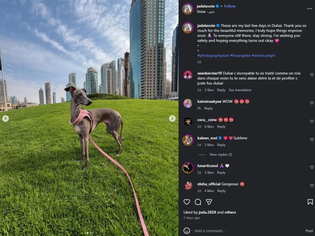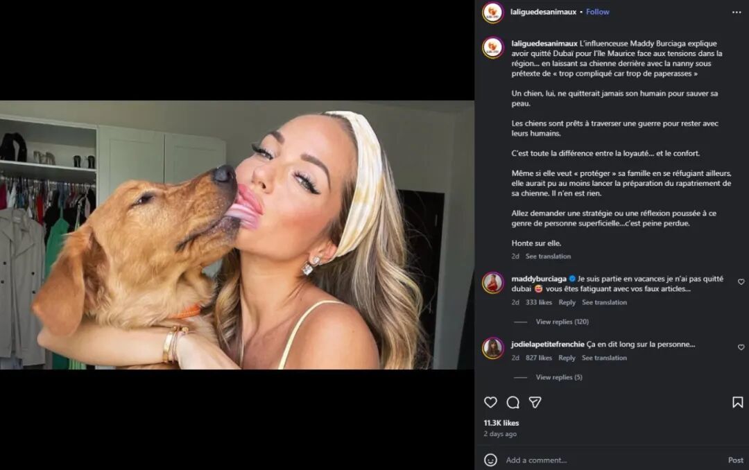 据报道,她在冲突爆发后携家人逃往毛里求斯,将她的狗“玛雅”留在了迪拜,交给保姆照看。