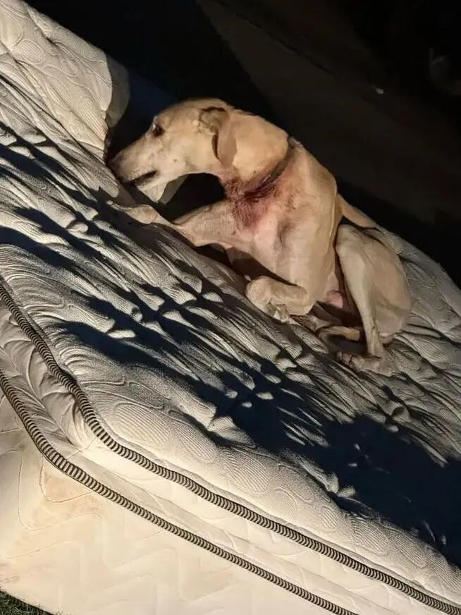 一名志愿者对媒体透露,她亲眼看到一只萨路基猎犬被紧紧拴在路边一个床垫上,项圈已经深深勒入了脖子的皮肉......