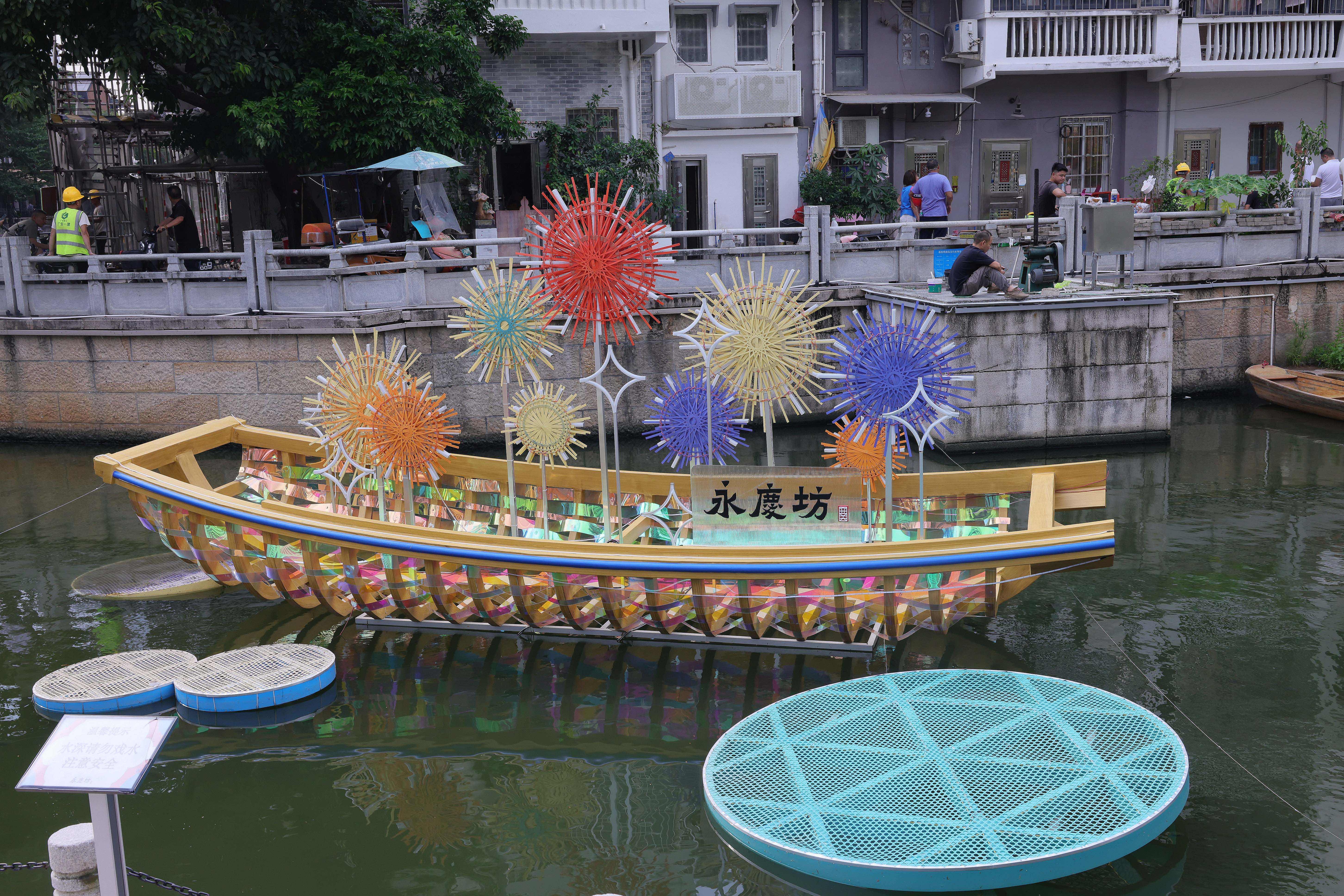 “荔湾位于广州市西部,被定位为‘最具岭南特色的中心城区’。岭南气候湿热,人们有调理身体的多种方法。”于澳门科技大学博士在读的多元媒介艺术家关皓文表示,本次他的作品《症候与方剂》通过中药材作为媒介,封存在方块中,探讨物质本质与时间性。“船木象征厚重历史文化的荔湾,像巨人不断焕发生命力,借中医拔罐形式疏通经络。”