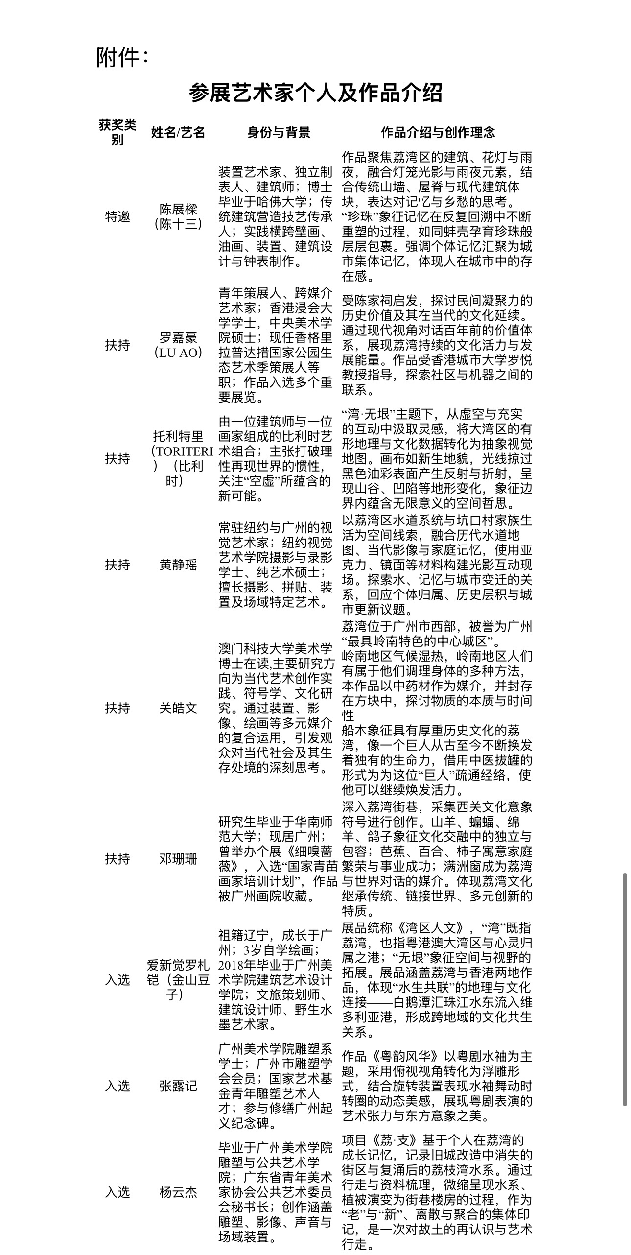 本届“荔萌计划”特邀皮道坚、曹雪等六位艺术界资深专业人士担任本届评审导师,他们表示,“荔萌计划”是一个促进荔湾与大湾区当代艺术发展的一个很好的项目,它能够促进荔湾的“在地”当代艺术走向世界,迎来更多的国际艺术文化交流。